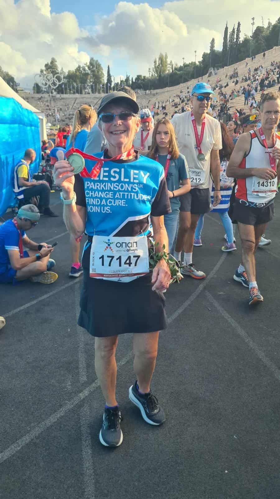 Lesley Cottle ran the scenic Athens marathon through historic sites in 5:11:35.
